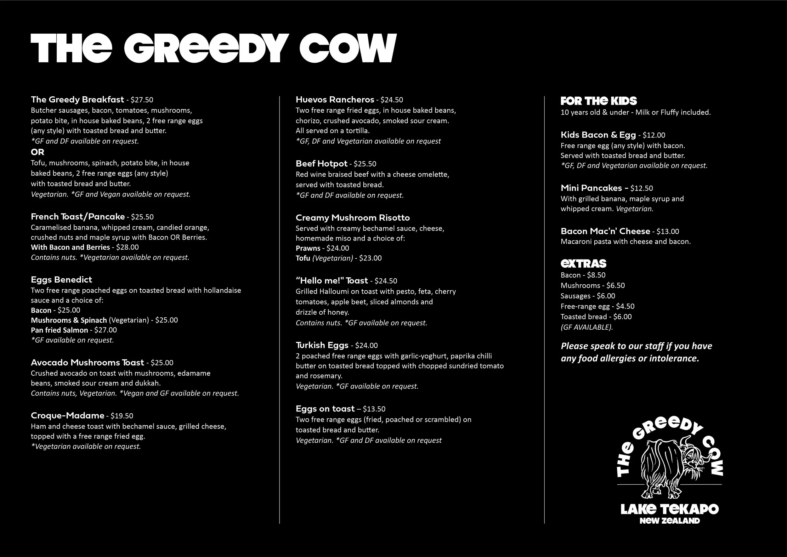 “Please speak to our staff members if you have any allergies or food intolerance. Thank you!”